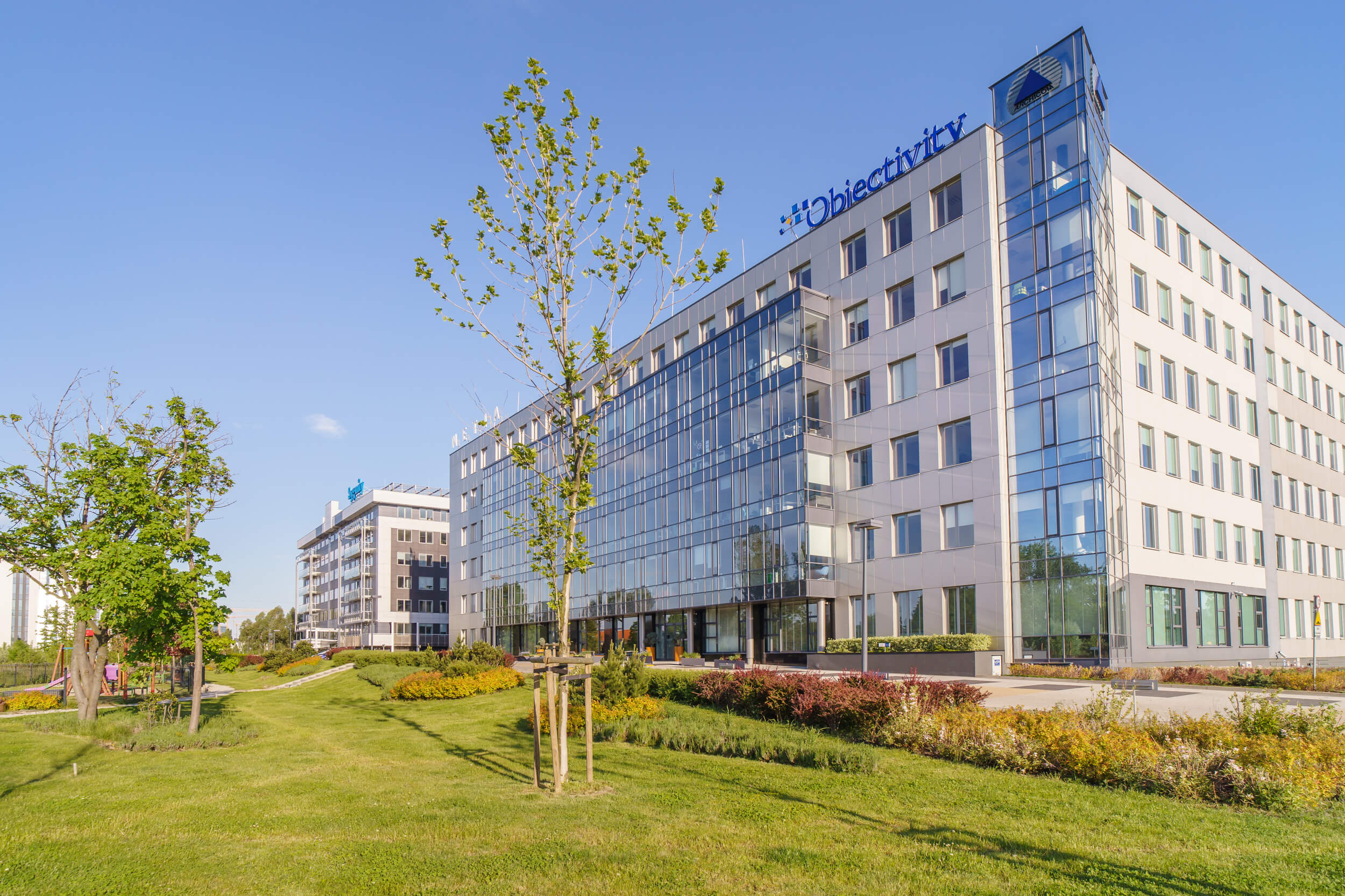 Additionally, the building is just a 3-minute walk from the fast city rail station (Muchobór station), enabling quick communication with the center of Wrocław in just 6 minutes.