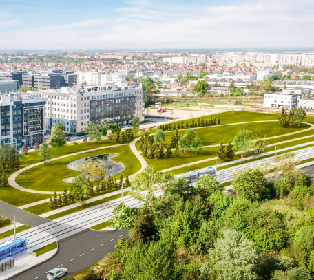 West Forum is ideally located for those using both public and private transport. The proximity to the Gądowianka overpass, which connects with national road no. 5, ensures excellent communication for tenants and their guests.